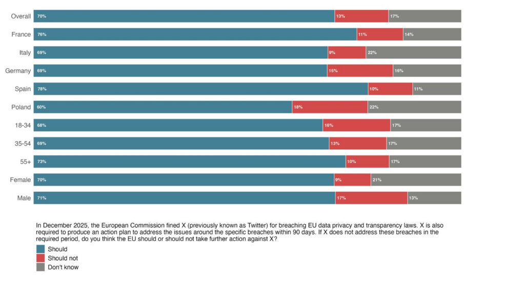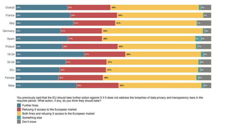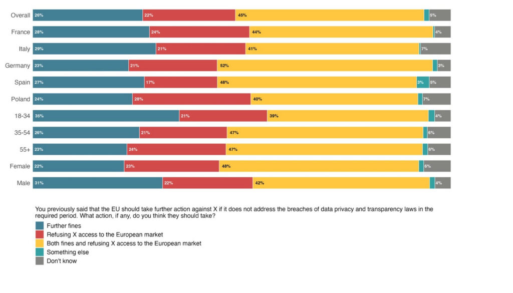 YouGov polling across 5 major EU countries also reveals that 70% of respondents want further action against X if it fails to respond to data privacy and transparency breaches